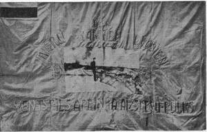 2011.gada 3.marts, Nīkrāces pagasts “Lēnas”, karogs pēc iesvētīšanas pie piemiņas sienas par godu 1919.gada Brīvības cīņās kritušajiem.