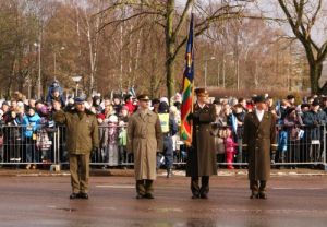 2011.gada marts, pulkveža Oskara Kalpaka piemiņas pasākuma laikā, vienības karogs kreisajā pusē.
