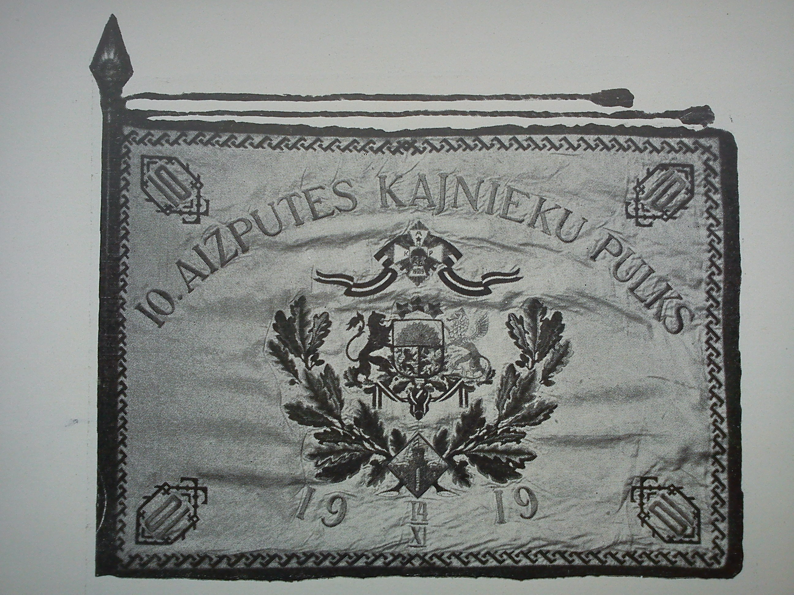 1922.gadā Aizputes pilsētas sabiedriskās organizācijas uzdāvināja pulkam karogu.