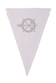 Karoga kreisā puse no ziloņkaula krāsas zīda tafta – izšūta.