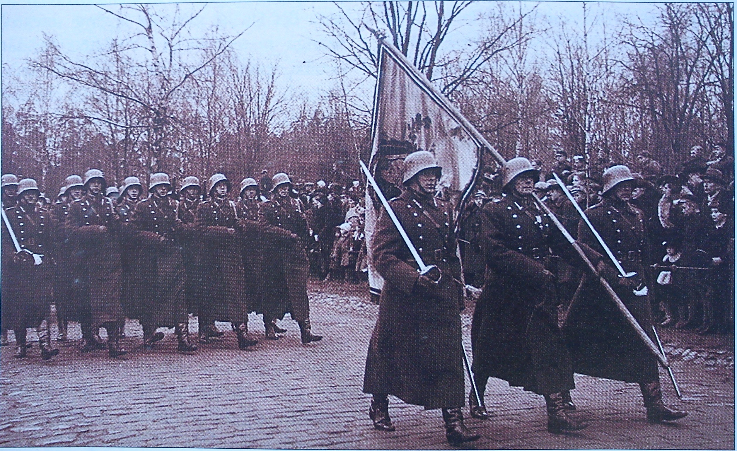 Bataljona kareivji parādes laikā, Rīga, Uzvaras laukums, 1939.gada 18.novembrī.